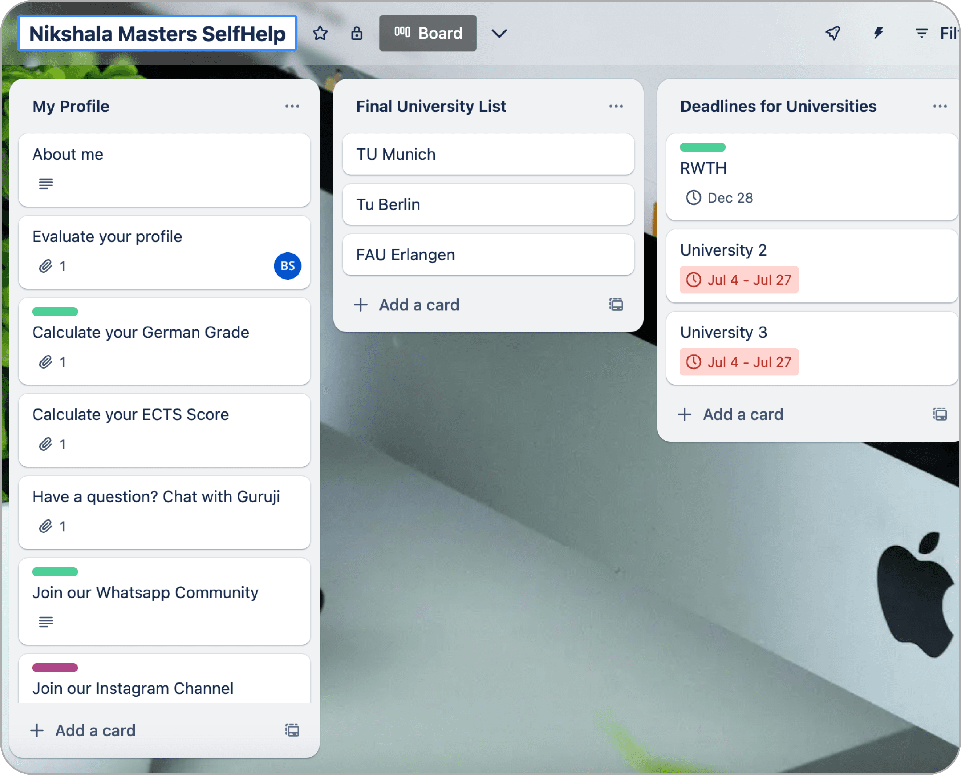 Stay organized with a Trello roadmap for your study abroad. Manage tasks, track deadlines, and achieve goals easily.